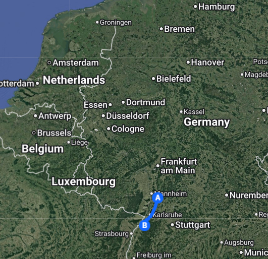 De route van Baden-Baden terug naar Nederland is eenvoudig en goed te rijden. Je volgt voornamelijk snelwegen. De afstand bedraagt ongeveer 500 tot 550 kilometer naar het centraal gelegen Utrecht, afhankelijk van de gekozen route, en je bent gemiddeld 5,5 tot 6,5 uur onderweg zonder lange stop.