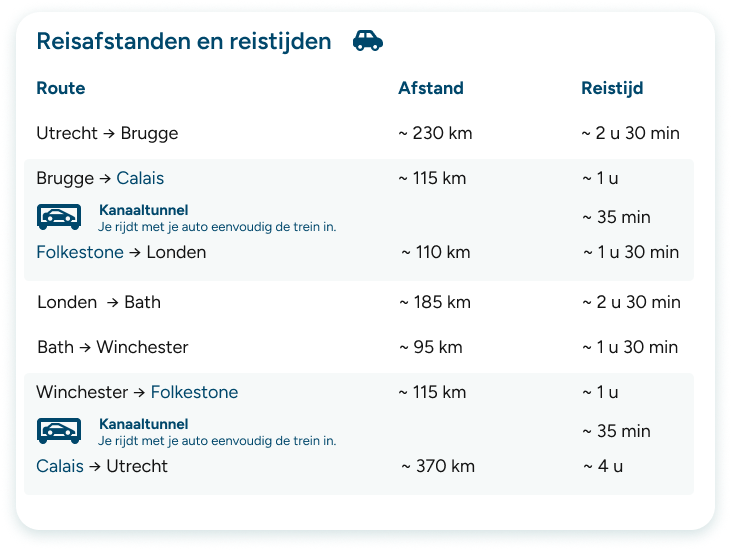 Ontdek de magie van Zuid-Engeland in winterse sferen. Vanuit romantisch Brugge in Belgie reis je via de Kanaaltunnel naar Londen, waar de stad straalt van lichtjes en kerstmarkten. Daarna wacht het historische Bath met zijn beroemde markt rondom de abdij, en Winchester, dé kersthoofdstad van Engeland. Korte rijafstanden, meerdaagse verblijven en volop tijd om te genieten maken deze roadtrip ideaal om de feestdagen sfeervol in te luiden.